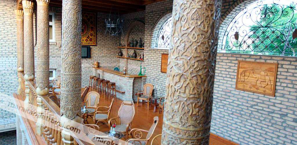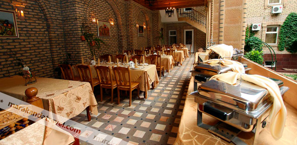 Le restaurant à la décoration classique est orné d'un piano ancien et propose un grand choix de plats ouzbeks et européens à la carte. Un éventail de boissons et de cocktails sont également servis au bar donnant sur la paisible cour.