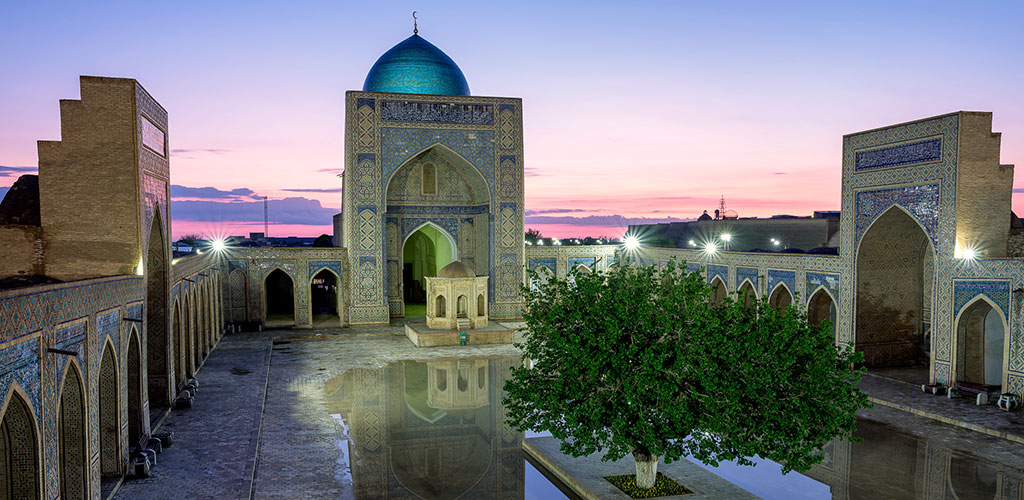 Le patrimoine architectural de l’Ouzbékistan est riche de quelques uns des plus beaux édifices du monde musulman. En Asie Centrale l’architecture est un peu le résumé de la socièté: avec les édifices religieux, c’ets le triophe de l’islam. Les matèriaux d’architecture: en général la brique cuite prédomine. Elle doit protéger du froid en hiver et premettre la fraicheur des pièces en été. L’usahe de la pierre et du marbre est plus rare. Le «gantch» platre à base de gypse est employé pour les briques, il sera utilisé également pour les muolures, fixer les céramiques. Le bois sert pour les coffrages, les colonnes, les plafonds à poutres, les portes.... Les révétements en céramique sont de couleur turquoise, verte, noire, ce sont des plaques carrées ou héxagonales assemblées. Depuis plus d’un millénaire, l’islam a déterminé la fonction, la disposition et la décoration des édifices. La nature désertiqye de l’Asie Centrale a profondément influencé l’architecture de cette région. Les cités y sont repliés sur elles memes, pour se protéger des vents du désert et des incursions des nomades. L’abcense de pierre et de bois d’ouevre ont conduit à l’usage de la brique cuite jusque dans les coupoles. La chaleur du désert a inspiré la construction des aiwans, des jardins et de petit canaux d’eau fraiche. De nos jours, l’architecture en Asie Centrale se teinte de bleu à Samarkande, de kaki à Boukhara et de vert à Khiva: Samarkande est la plus spectaculaire, Boukhara la plus variée, Khiva la plus homogène. Fin du XIVe s. – l’idée de glorifier le Souverrain – on aboutit à un expressionisme monumental à travers une simplicité de volumes, contraste des formes, diversité des motifs ornementaux, richesse des revetements (exemple Gour Emir) Première miotié du Xve s. – l’architecture prend un role social correspondant à l’idéal de l’époque: tout est équilibre, raffinement, élégance, c’est la période classique de l’architecture timouride (Médersa Ouloug Bek sur la place Réguistan)