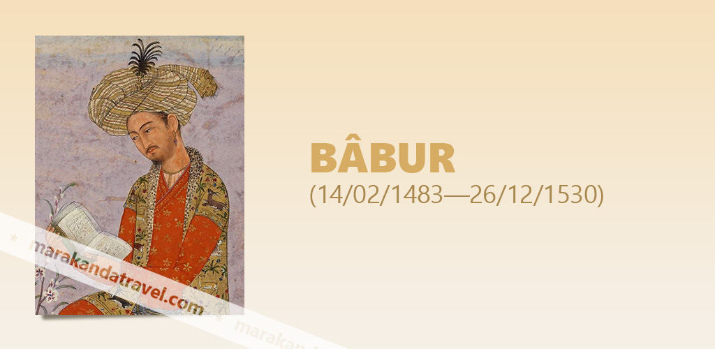 Bâbur (14 février 1483 - 26 décembre 1530) est un conquérant célèbre de l’Inde et le fondateur de la dynastie Baburides. Son nom est Zahir ud-din Muhammad, mais il reçoit le surnom de Bâbur, signifiant « le léopard ». Descendant de Tamerlan par Miran Shah et de Gengis khan par sa mère, il naît le 14 février 1483 à Andijan. Son père, Omar Sheikh Mirza, était roi de Ferghana, une partie du Turkestan, maintenant en Ouzbékistan. Omar meurt en 1495, et Bâbur hérite du trône, bien qu’âgé seulement de douze ans. Une tentative de renversement par ses oncles échoue, et aussitôt son trône assuré, il réfléchit à étendre son territoire. En 1497, il attaque et prend Samarkand, sur laquelle il pense avoir un droit légitime héréditaire. Une rébellion parmi ses nobles s’empare de son royaume. En route pour le reconquérir, ses troupes l’abandonnent et il reperd Samarkand. Il reprend ses territoires perdus, mais en est finalement chassé en 1501 par son ennemi principal, Muhammad Shaybânî, le Khan des Uzbek. Pendant trois années, il erre, tentant en vain de récupérer ses possessions perdues, puis en 1504, rassemblant quelques troupes fidèles, il traverse l’Hindū-Kūsh enneigé, prend la ville forte de Kaboul et se retrouve à la tête d’un riche royaume. De nouveau, après la mort de Shaibani en 1510, Bâbur réclame ses possessions originelles, et reçoit l’aide déterminante du turkmène Ismail Safavi, et en 1511 fait une entrée triomphale dans Samarkand.