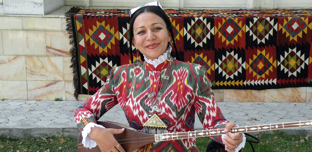 Le Dutar est un luth à long manche fabriqué en bois de mûrier avec deux cordes pincées. Le Tambur est un luth à long manche avec trois cordes en métal,la mélodie est donnée par un plectre en métal sur la corde haute Le Rubab est un luth à long manche avec un corps arrondi et un plateau en parchemin.Il posséde cinq cordes (dont deux doubles cordes en métal) frappées avec un plectre Le Gidjakk est un violon pointu au corps arrondi avec un manche cylindrique relié à quatre cordes en acier Le développement intense et dynamique de l'art ouzbek musical a commencé en 20 s. Le développement du drame lyrique contribuait à la naissance à l'Ouzbékistan de l'opéra .À présent dans la république il y a plus de 300 écoles musicales pour les enfants et les écoles des arts.