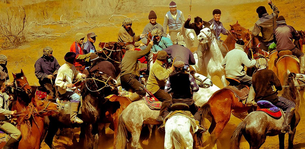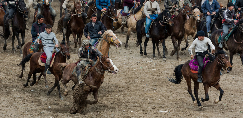 Le sport, par excellence, d'Asie Centrale. D'origine mongole, cette grande joute équestre rappelle le temps où les différents clans se volaient mutuellement le bétail. Pour saisir toute l'intensité du jeu, relisez les pages immortelles de Joseph Kessel dans « Les Cavaliers ».