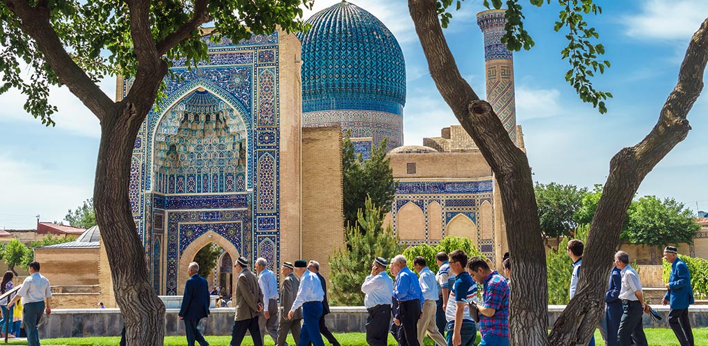 Route pour Chakhrisabz et découverte de la ville natale de Tamerlan Au retour, arrêt à un petit village appelé Tersak dans les montagnes près de Samarcande. Peu habituée à croiser des touristes, la population locale vous réservera un accueil chaleureux et sera ravie de vous faire découvrir ses us et coutumes. Vous serez invités à partager le thé vert autour d’une table basse appelée khantakhta avec les habitants du village qui se feront une joie de discuter avec vous! Promenade dans le décor des monts Zarafshan et tasse de thé chez l’habitant.
