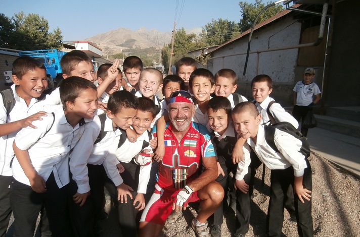 Un cyclotouriste francais avec des enfants a Parkent