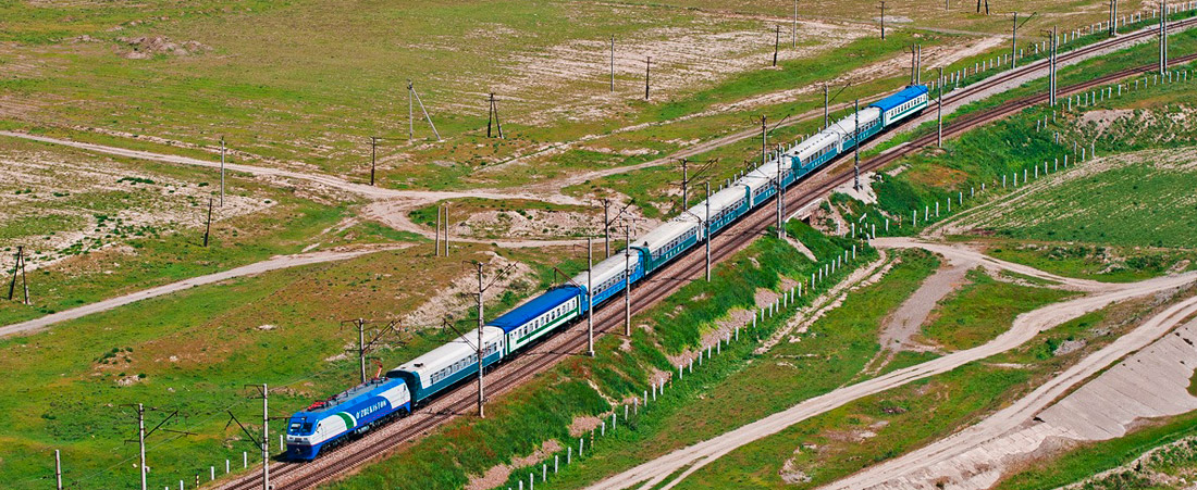 L'Ouzbékistan dispose d'un bon réseau ferroviaire qui relie entre elles les plus grandes villes. Les voyages à bord du train à grande vitesse «Afrosiyob» à une vitesse pouvant atteindre 250 km/h! qui assure la liaison entre Tachkent et Samarcande, Boukhara sont particulièrement confortables. Les voitures de voyageurs sont pourvues de sièges confortables, moniteurs vidéo et outils d’éclairage, disposent des espaces de rangement spéciaux pour vêtements et bagages. Les sièges sont équipés d'une tablette et d'un repose-pieds. Chaque wagon est équipé d'un tableau d'affichage qui indique l'itinéraire, le numéro du wagon, la température dans le wagon et la vitesse actuelle. Dans le wagon-bar, des boissons fraîches, du thé et du café sont proposés. De plus sont servis des plats orientaux, mais aussi européens (non inclus). Ils comportent une 1re, une 2e classe et une classe “VIP”