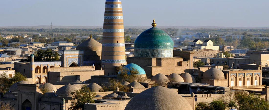 Petit déjeuner à l’hôtel. En cas de départ très tôt le matin, nous pouvons, sur demande, mettre à disposition un plateau petit-déjeuner à l’hôtel. Transfert à l’aéroport et envol matinal vers Urgench (1h20 de vol). Arrivée et accueil à la sortie de l’aéroport. Transfert vers Khiva (35 km). Installation à l’hôtel (check-in :14h00 (Occupation immediate des chambres à l'hôtel a l’arrivee matinale est possible sous reserve du supplement).) (Les chambres sont disponibles à partir de midi. Suivant la disponibilitee de l'hotel la reception peut vous offrir un check-in avant midi. Dans le cas de non disponibilitée de chambre a votre arrivee vous aurez la possibilitee de laisser vos baggage a la reception et de les recuperer plus tard lors de votre check in.)